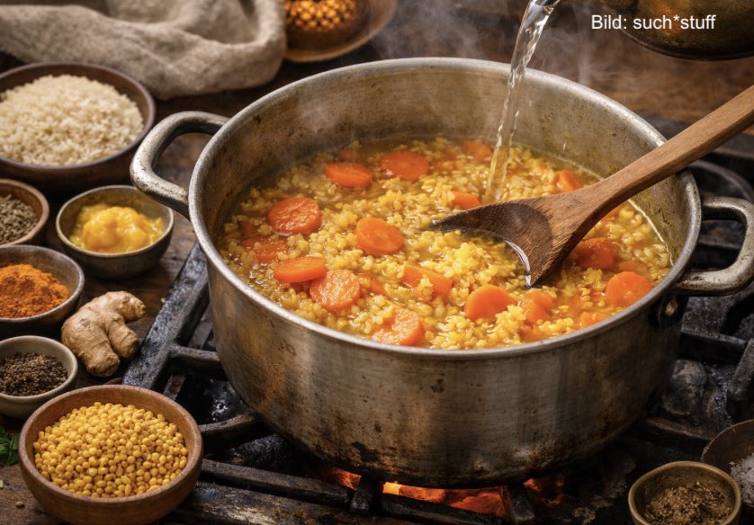 Wenn ich Kichari koche, dann ist das kein Rezept, sondern ein kleines Ritual. Ich stelle den Topf auf den Herd, als würde ich ihm ein Geheimnis anvertrauen, und beginne langsam, beinahe andächtig. Kichari stammt aus der ayurvedischen Küche Indiens, wo es seit Jahrhunderten als wärmende, heilende Mahlzeit gilt – eine Umarmung aus Reis und Linsen, gedacht für Tage, an denen Körper und Geist ein bisschen Fürsorge brauchen.